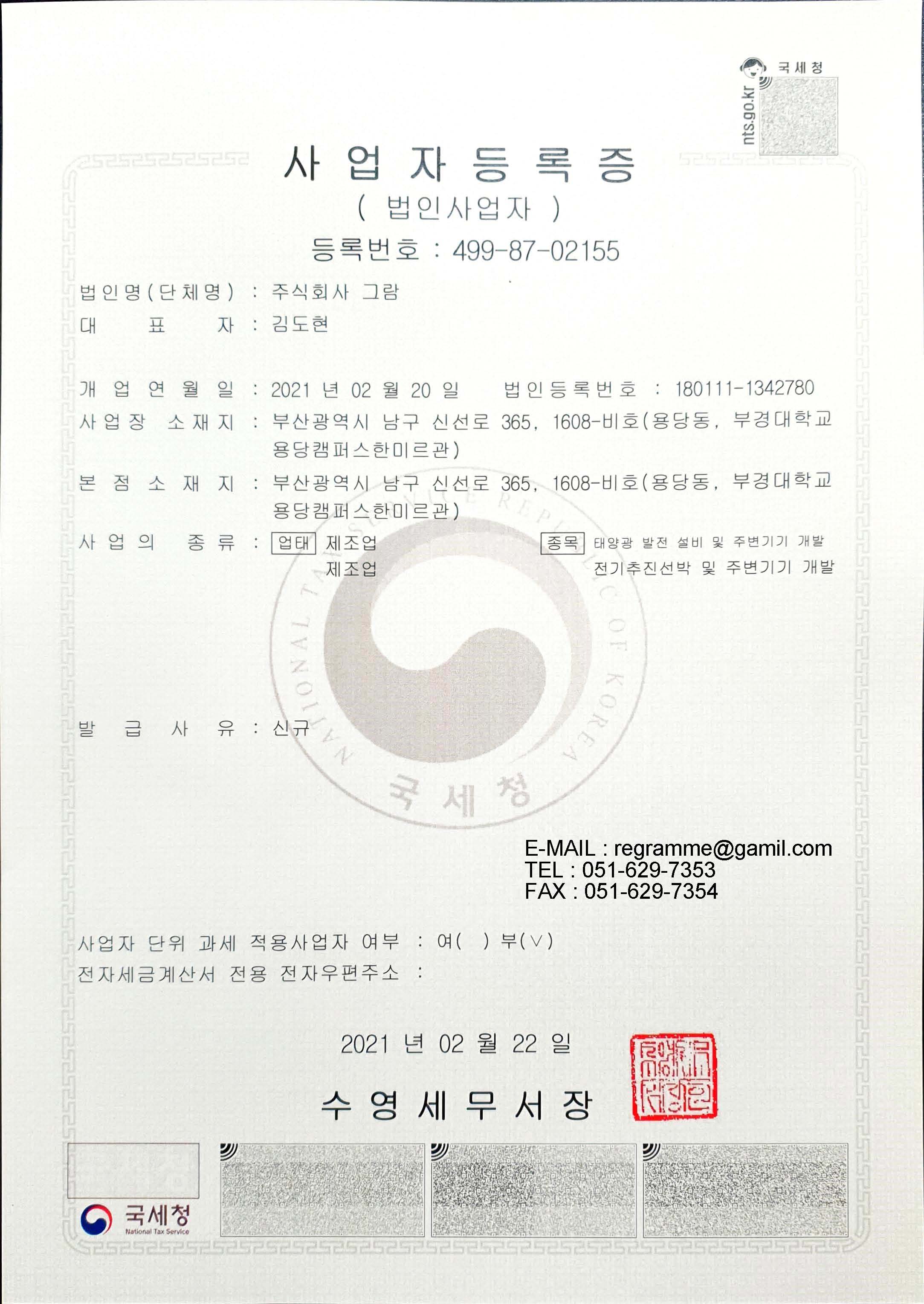 주식회사 그람 사업자등록증 -